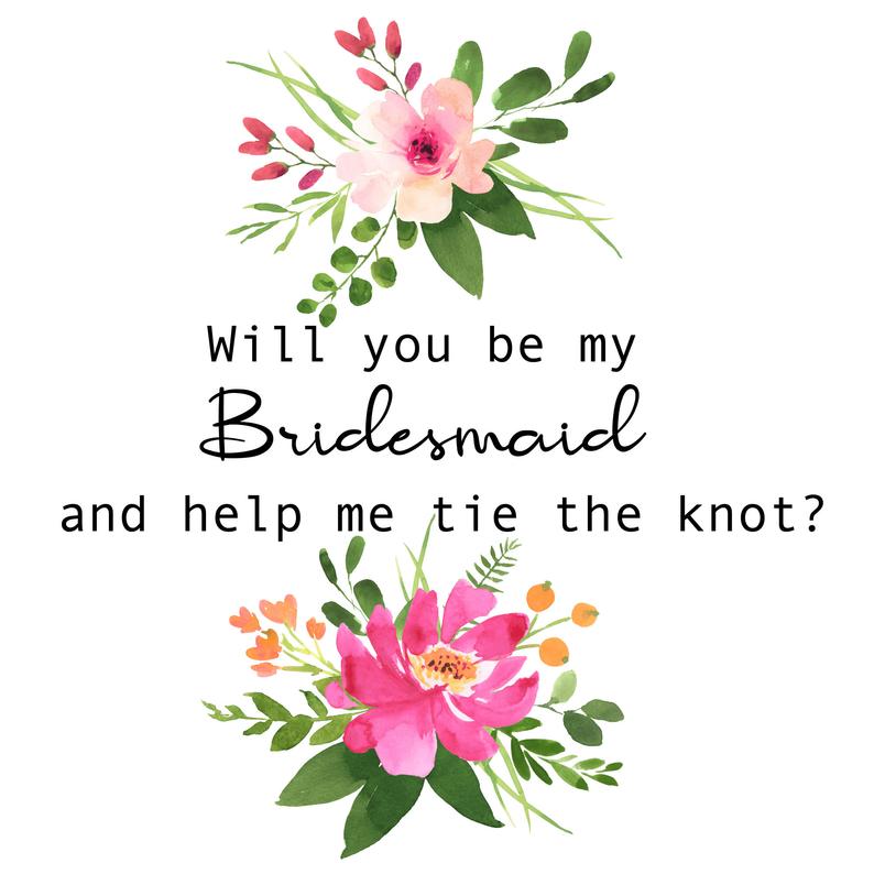• Tekst van de berichtvoorstelkaart: 'Wil jij mijn bruidsmeisje zijn en me helpen in het huwelijksbootje te stappen...'