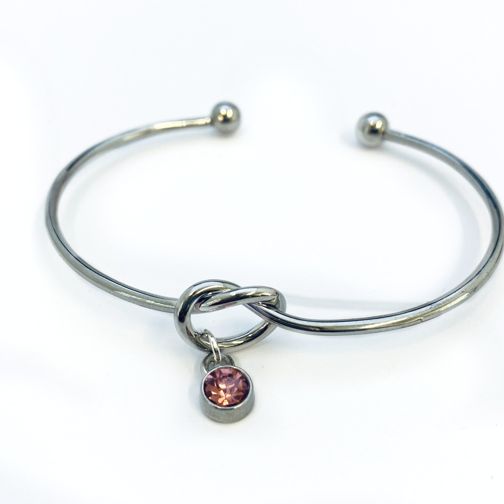 • One silver knot bracelet includes one crystal birthstone charm of your choice