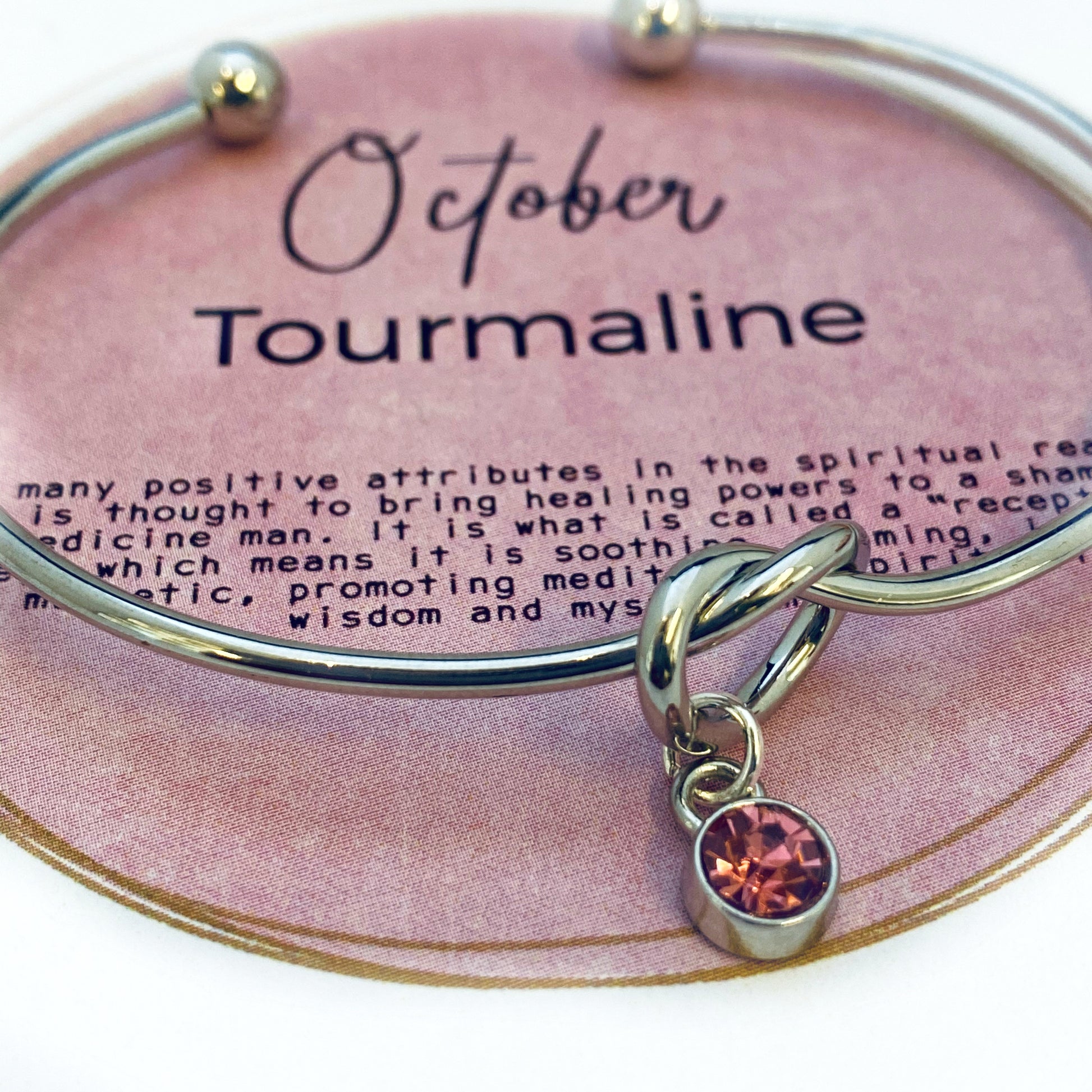 Birthstone Bracelet, October Bracelet Gift, Love Knot, Personalized Bridesmaid Gift, Tourmaline charm, Bridesmaid Bracelet, Silver Knot