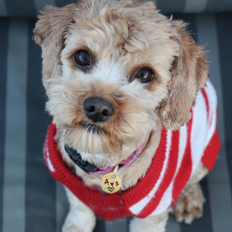 Aluminium of messing zal niet roesten of groen worden en kan opgepoetst worden met een zachte doek. Na verloop van tijd kan koper iets donkerder worden mede door de olie in de vacht van het dier. Heel gemakkelijk is dit schoon te maken met een klein beetje ketchup!