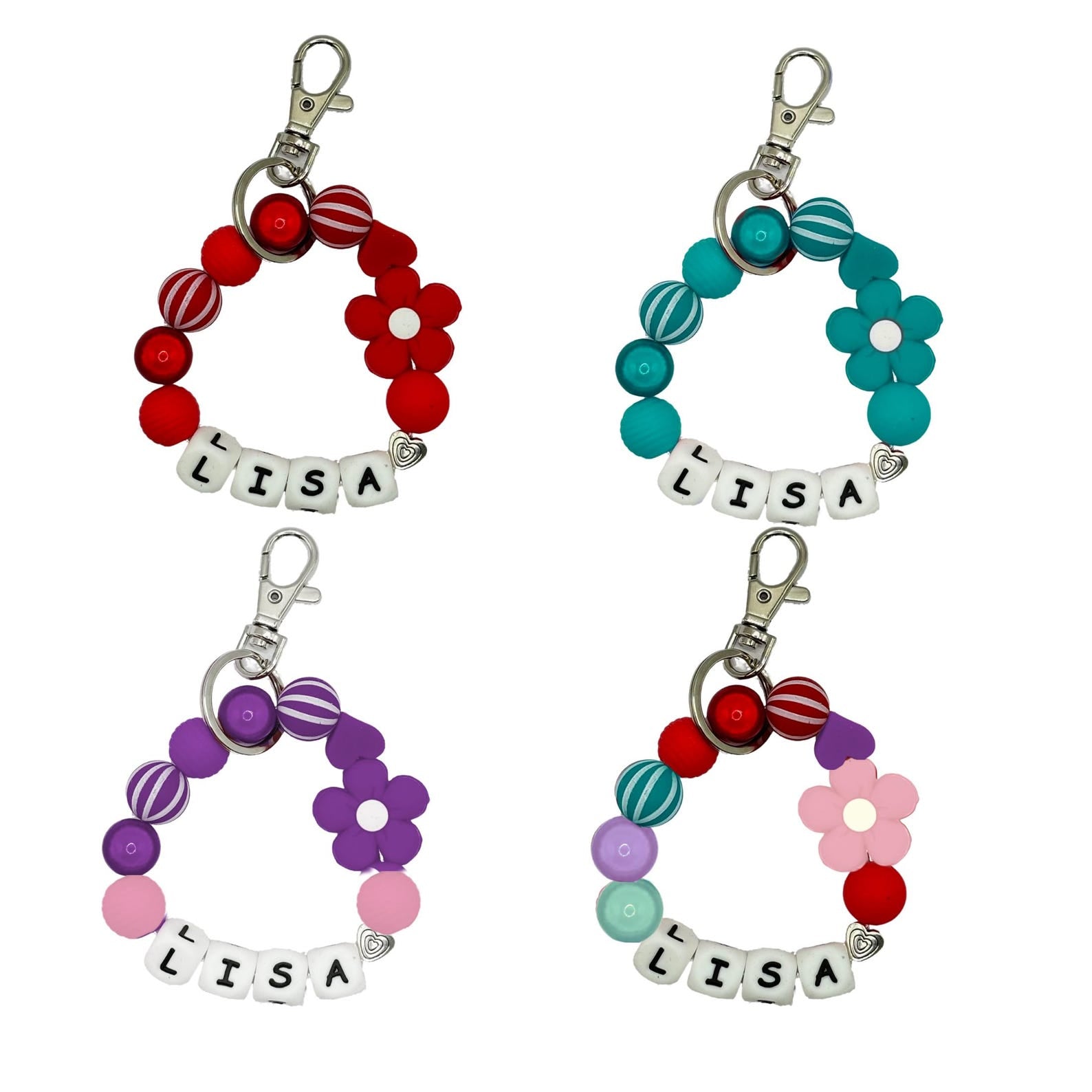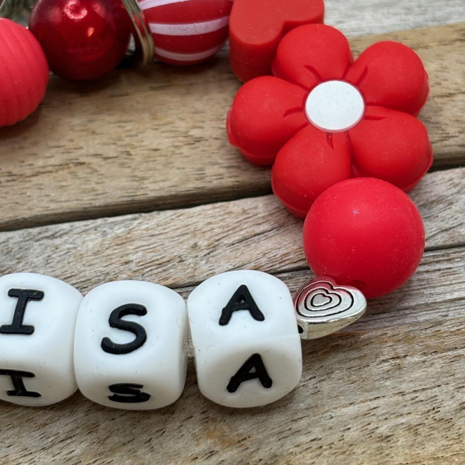Gepersonaliseerde XL Grote siliconen kralen sleutelhanger met naam wristlet armband GRATIS VERZENDEN